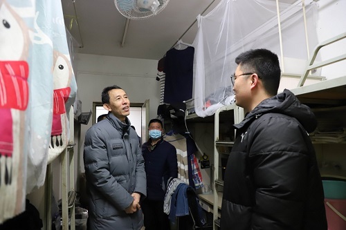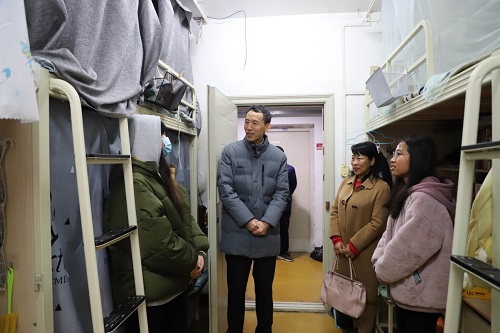 随后,校领导一行前往学生寝室看望留校学生,仔细了解了大家寒假留校原因和假期学习生活安排,勉励同学们要科学规划假期生活,加强体育锻炼,增强身体素质,严格遵守各项疫情防控规定,有困难随时向学校和学院反映。同时,叮嘱同学们寒假期间要多与家人、亲友联系,随时沟通自己的在校情况,注意安全,度过一个平安、欢乐、充实的新春假期。