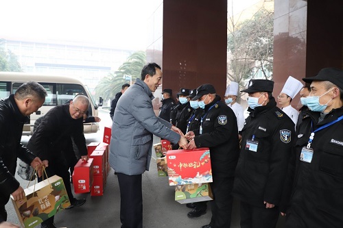 校领导一行先后来到武侯校区食堂、学生公寓服务大厅、校医院、交通运输服务中心、后勤办公楼、校园大门岗亭及航空港校区专家楼岗亭等处,亲切询问了在岗教职员工的身体及生活情况,交流了各岗位工作的运转情况,对大家在新春佳节之际仍坚守工作岗位表示衷心感谢。