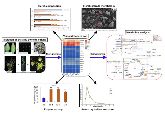 咨询电话:随着生活水平不断提高,肥胖症、糖尿病和肠道疾病发生的几率显著增加,抗性淀粉具有降低血糖血脂、预防直肠癌等肠道和心脑血管疾病等多种保健功能,是理想的膳食来源。大麦是世界第四大禾谷类粮食作物,是藏区人民的主食。大麦籽粒中淀粉约占50%-70%,高抗性淀粉含量大麦可用作功能食品的重要原料。近日,小麦研究所郑有良教授团队江千涛教授研究组利用CRIPR/Cas9技术对大麦淀粉合成酶基因SSIIa进行基因编辑,获得了高抗性淀粉大麦新种质,结合酶活、转录组和代谢组学阐明淀粉的特性变化机制,相关成果“Editing of the starch synthase IIa gene led to transcriptomic and metabolomic changes and high amylose starch in barley”发表在国际著名学术期刊《Carbohydrate Polymers》(中科院1区TOP,IF=9.381)。