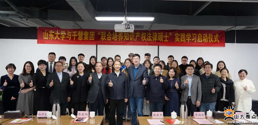 山东省市场监督管理局、济南市市场监督管理局、济南市高新技术开发区管理委员会等单位相关负责人;山东大学法学院相关负责人以及2020级知识产权特色班全体法律硕士研究生;山东千慧知识产权集团有限公司相关负责人参加启动仪式。