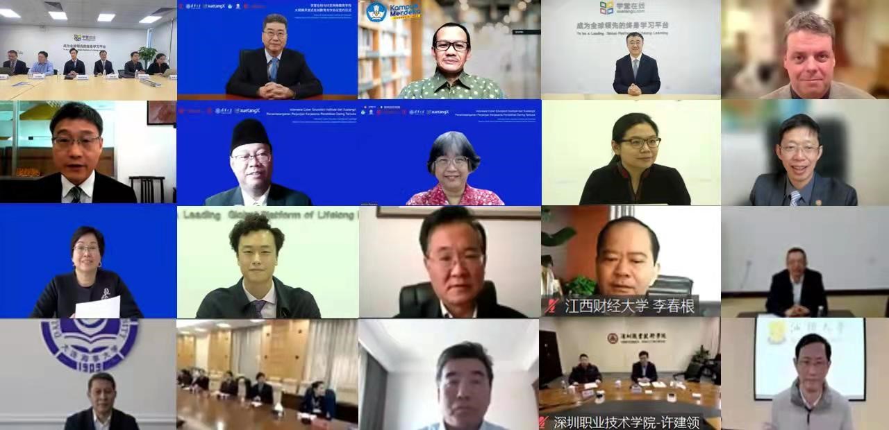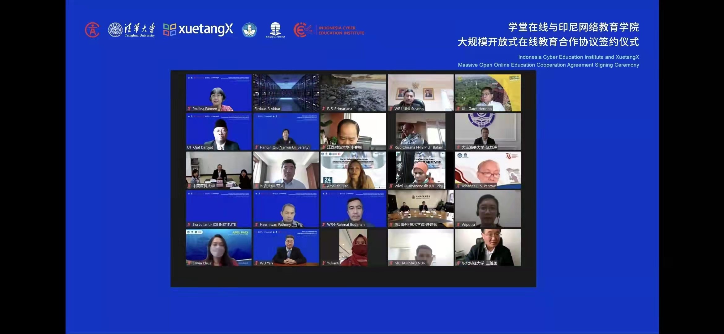 此次会议上,学堂在线与印度尼西亚国家在线教育平台印尼网络教育学院达成合作意向,由学堂在线携手中国18所高校,为印尼提供60门全英文授课的高水平慕课,用于印尼网络教学学院合作成员高校学生的在线学习。我校郭军康教授负责的全英文课程《Ecological Environment Protection and Sustainable Development》入选首批印度尼西亚开放课程,课程团队成员受邀在线出席了活动仪式。