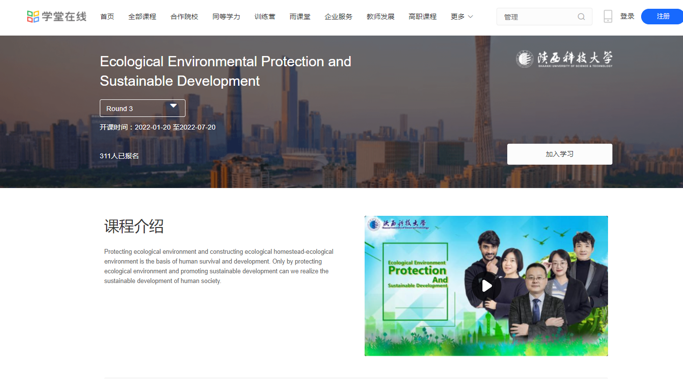 《Ecological Environment Protection and Sustainable Development》课程聚焦目前全球范围内普遍存在的生态环境问题、社会发展与环境问题、经济发展与环境保护的关系、以及水、大气、固体废弃物等主要环境污染问题和污染控制技术方法。在此基础上,突出了生态文明建设的理念与可持续发展的实施路径,对于学生了解环境问题,树立尊重自然、顺应自然、保护自然的生态文明理念具有积极的意义。