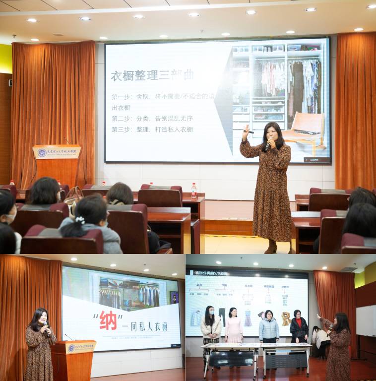 改变生活环境,拥抱雅致生活,化工学院工会3月4日下午在知化楼D102开展了一场“遇见最勤的自己”——“纳”一间私人衣橱技巧主题沙龙活动,带领女教职工学习收纳方法、技巧。