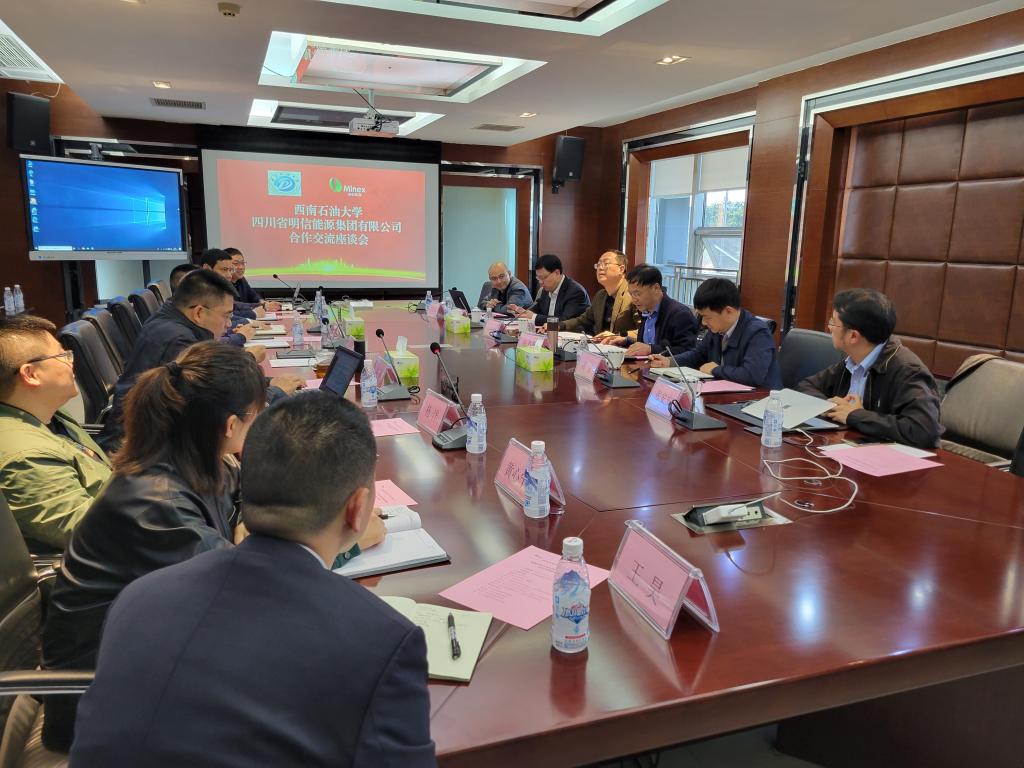 四川省明信能源集团董事长王涛对张烈辉一行的到来表示热烈欢迎,对我校科研成果、社会和行业影响力给予了高度赞誉,对双方前期合作取得的成效表示肯定,期盼双方通过加强交流不断加深和扩展全方面合作。明信能源集团董事姚少彬对企业在能源清洁替代、电代油、行业绿色转型、新能源+先进信息技术等方面的业务板块、技术实力和发展规划等进行了介绍。