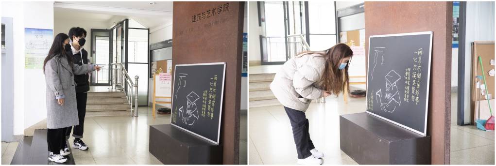 建筑与艺术学院的同学与毕建奎师傅朝夕相处,对他新作深有体会:“身为一个美术生,总是能看到毕爷爷一张张充满生机的画作,这是一件很温柔浪漫的事情。希望自己在爷爷的年纪也能做同样的事情,用画作温暖身边人。”“在校园严格管理期间发现这样一个活泼可爱的小板报,让我眼前一亮,爷爷这种心如止水的心境,值得我们每个人学习。”