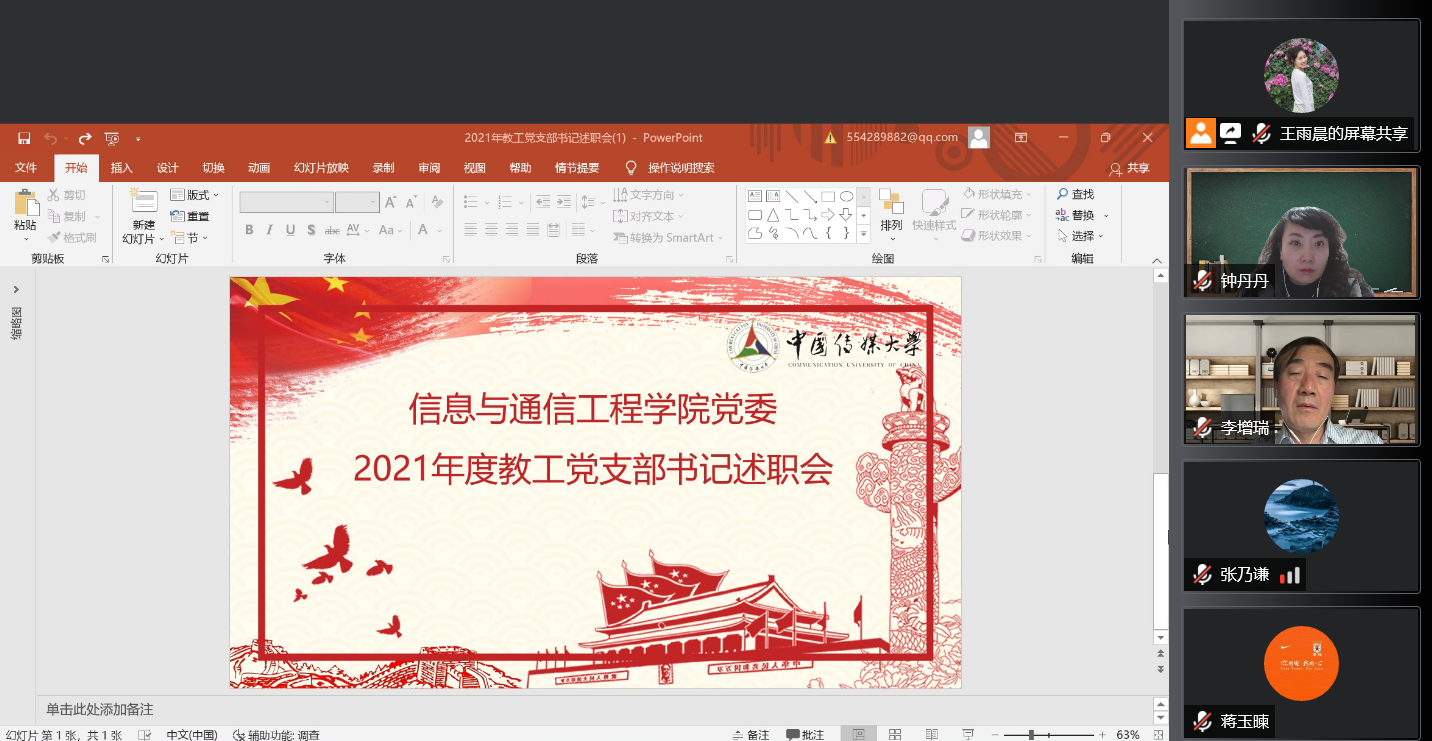 继续教育培训网首页3月20日,信息与通信工程学院党委线上召开2021年度教工党支部书记述职会,会议由学院党委书记李增瑞主持,学院全体教工党支部书记参加述职,全体党委委员出席并担任评委。