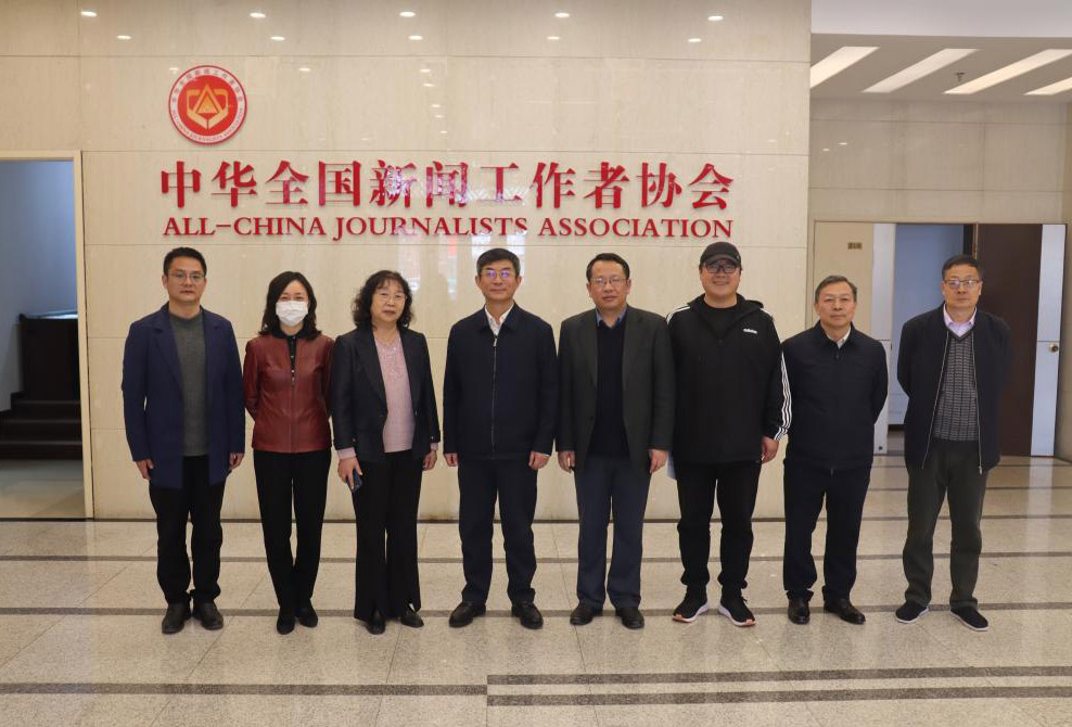 中华全国新闻工作者协会书记处书记吴兢、办公室主任孙剑锋、国内部主任殷陆君,以及我校数字媒体与设计艺术学院院长贾云鹏、教授王文宏参加会谈。