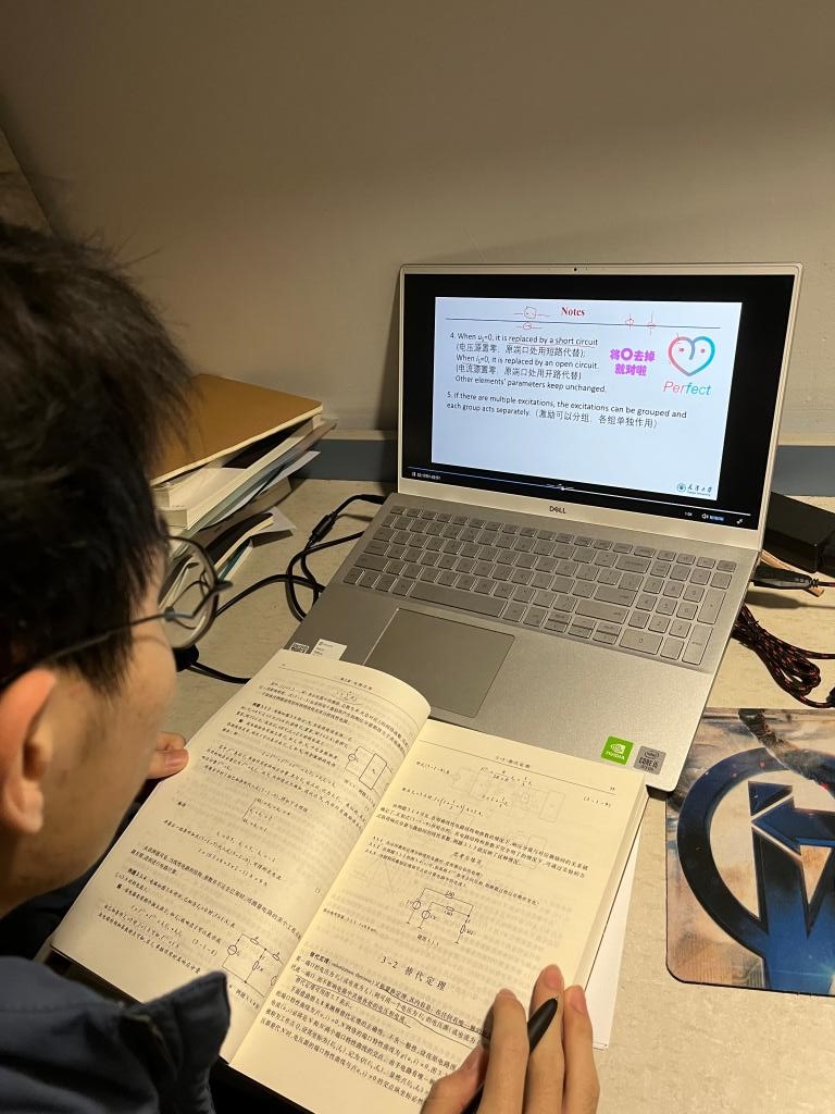 “电路基础”课程是电子与电气信息类各专业本科生必修的一门重要的学科基础课。“电路基础A”课程恰逢春季开设,课程组做了全方面的应对工作,力保课程质量不下降。在学期开始前,课程组针对特殊的疫情形势进行了教学方式、教学进度安排、课程内容、成绩评定等方面进行了详细的讨论,确定了小班直播的授课方式,重点研讨了雨课堂5.2版、腾讯会议等平台,并辅以“电路基础A”Spoc课程,方便学生及时查漏补缺,及时检测学习效果。教学过程中,课程组老师及时把各自班级的授课情况进行反馈,将优秀的做法进行推广,对面临的问题进行探讨,共同寻找解决方案。考虑学生没有办法及时拿到纸质教材,课程组将课本对应章节的电子版发给学生,方便学生学习。线上教学和线下的教学氛围和教学条件显著不同,电路基础作为典型的工科专业基础课程,在线下教学中有大量的例题计算板书。为了适应线上教学,老师们对教学课件做了大量适应性调整,既要替代板书,更要保留教学过程循序渐进的启发性和引导性。学生通过雨课堂中的弹幕或在腾讯会议里的语音和老师进行课上互动交流。课后教师利用思维导图引导学生系统性梳理复习知识要点,并对每道作业题制作了讲解视频微课。课下通过问卷星和微信交流群了解学生的学习体验和答疑解惑,并及时根据学生状态做出调整和修正。“线上教学,在老师讲课前可以有丰富充足的预习资料与学习资料,可以随时随地的网上查询,这样就可以保证自己脑中能有个大概清晰的知识框架,预习充分了再听老师讲课就可以紧跟老师思路走,学习效率也就自然而然提高了。在老师讲课时,必须聚精会神的紧抓住每一分每一秒,紧跟着老师的思路走,环环相扣,认真记下笔记并回答问题。有时老师在网络上会设置一个简单的课堂小游戏,这样大家的精神力就更活跃了,争着回答问题,课堂氛围活跃了,这个类型的知识点也就在欢声笑语中掌握了。”电气自动化与信息工程学院2021级电气信息类大一新生朱星磊说。