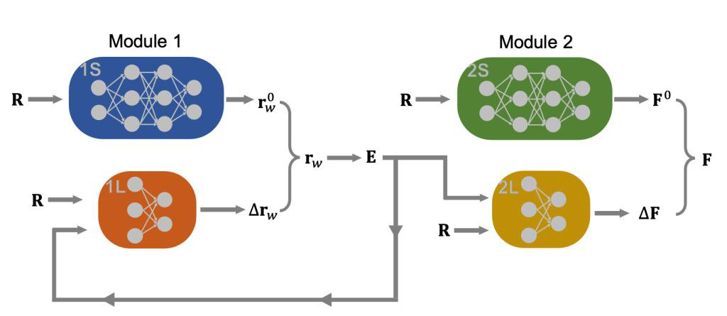 通过融合人工智能技术和电子的自洽场理论,高昂研究员与其合作者创新性地构建了分子模拟的自洽场神经网络(Self-Consistent Field Neural Network)模型,精确地描述了长程静电相互作用。该研究成果在分子模拟方面的精度比目前业界最前沿的第四代高维度神经网络势能模型(4GHDNNP)更高。基于上述研究成果的论文[1]于2022年3月23日发表在《自然》子刊《Nature Communications》上,北京邮电大学为论文第一完成单位,高昂研究员为论文第一作者及通讯作者。
