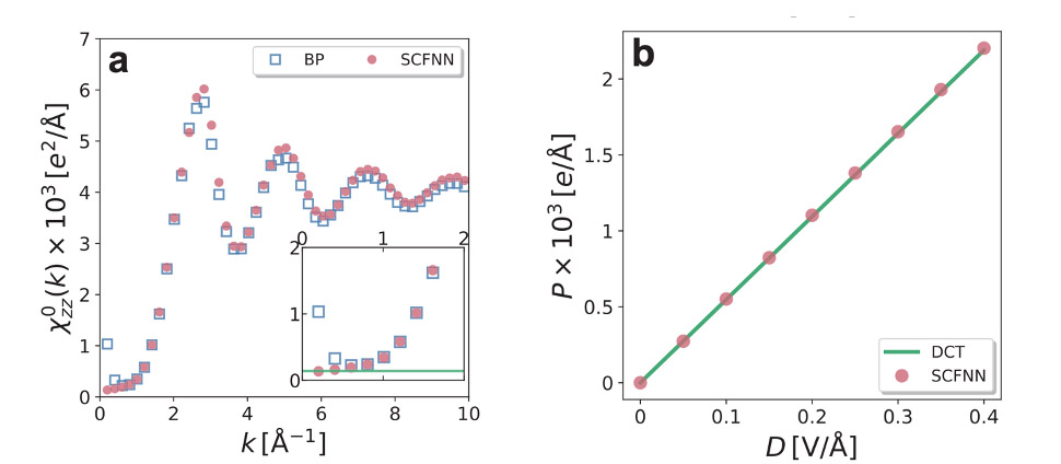 图2:自洽场神经网络模型可以精确描述水分子的长程关联以及其对外电场的响应