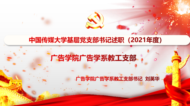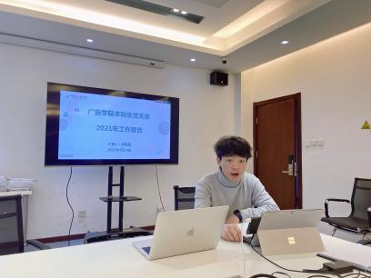 会议采取线上线下结合的方式进行,由学院党委书记陈江华主持,院长兼党委副书记赵新利、专职组织员姜鹏、党委副书记韩伟担任评委。广告学系教工党支部书记刘英华、传播设计系教工党支部书记和群坡、公共关系系教工党支部书记刘朋、网络与新媒体系教工党支部书记刘珊、新闻与传播研究生党支部书记李颢、广告学研究生党支部书记向婧、设计艺术学与新媒体研究生党支部书记肖慧君、本科生党支部书记陈昊原进行述职,专职辅导员路寰参加了本次会议。