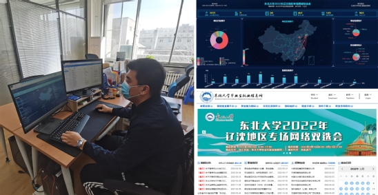 2021年8月以来,学校与东北五校就业工作协作体、地方政府、行业协会等合作,开展各类线上和线下招聘活动,并持续为用人单位提供咨询热线解答和线上业务办理服务。截至目前,4000余家用人单位在校举办专场招聘会1145场、组团招聘29场、大型双选会1场、空中宣讲会314场,发布网络招聘信息4501条,推送微信公众号推文1294条。3月23日,“服务东北振兴、助力辽沈腾飞”东北大学2022年辽沈地区专场网络双选会顺利举行,共有71家用人单位参会,提供有效需求岗位4647个,吸引了2022届毕业生的广泛关注,线上双选平台浏览量达9600余人次。在跳动攀升的数据背后则是学校“校、院、专业”三级就业市场开拓的多年积累和所有就业战线教师们的迅速行动,他们时刻密切关注着网络双选会实时动态数据。