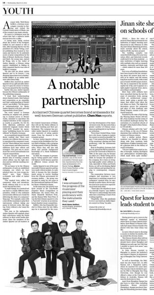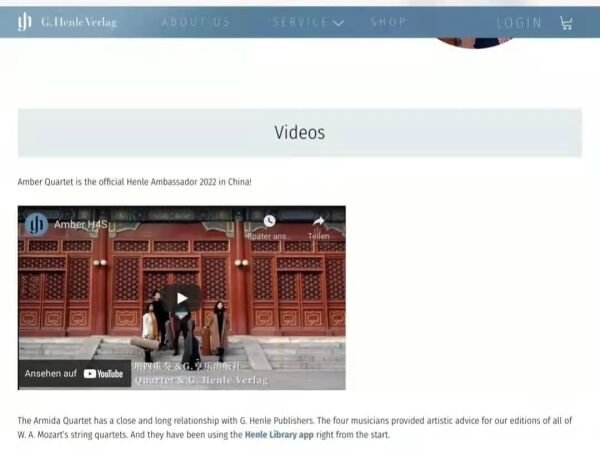 近期我校“琥珀四重奏”受德国G.亨乐出版社总经理沃尔夫·迪特·赛夫特博士邀请(G. Henle Verlag,Wolf-Dieter Seiffert),担任“亨乐图书馆App”大使,同时荣获“2022·亨乐弦乐四重奏中国大使”称号,这是亨乐出版社在全球范围内授予的首个“弦乐四重奏大使”称号,琥珀四重奏也由此成为首个获得这两项荣誉的中国弦乐四重奏团,再创中国室内乐历史。