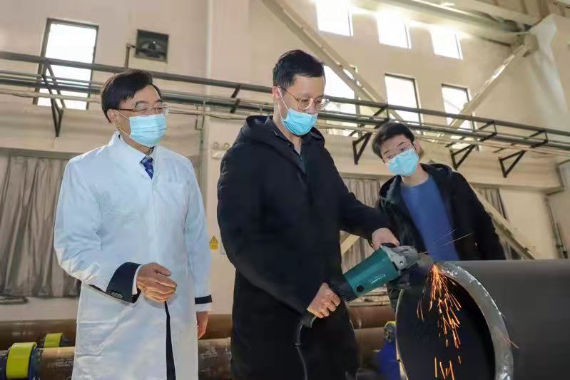 在建工学院余建星教授课题组,面对实验用管件加工难题,余教授带领研究生亲自切割、加工实验用全尺寸深海厚壁钢管试件,为完成国家重大工程攻关专项,开展了一系列深水、深海结构实验,及时为南海高新装备的设计提供依据。这位年轻时曾有过当兵服役经历的老教授在学生们眼里一方面和蔼可亲,另一方面又严格遵守规则。事实上,自1月份天津疫情以来,这位大腕科学家就一直睡在自己办公室的沙发上,仅春节回家休息了两三天。除了带学生科研,他还给本科生在线授课,对本科生和家长进行访谈,疏导封闭管理期间学生的心理压力,引导学生以积极心态看待疫情防控措施。每当有同学有抱怨情绪时,余老师也总是很坚定地跟他们说,为了校园的平安,全校上下都在竭尽全力,青年学生更要相信党和国家,大家一起努力,就一定能战胜疫情。