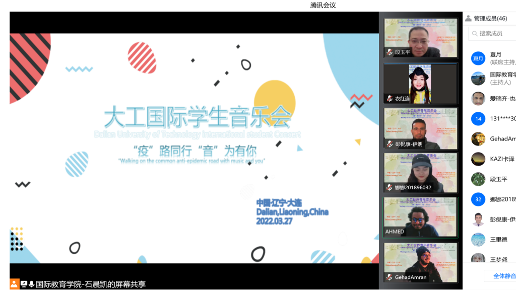 本次音乐会由校团委和留学生办公室提供支持,是我校国际学生首次在音乐中相聚交流的线上活动。音乐会上通过歌唱各自的民族歌曲促进学生之间的真情融合,为生活注入生机与活力;通过来自五湖四海的大工世界青年们共同唱响《名字叫中国》,以特别方式为大工、为中国加油,展现出他们的友好情怀与国际胸襟,也为疫情当下国际学生的生活增添了信心与笑容。
