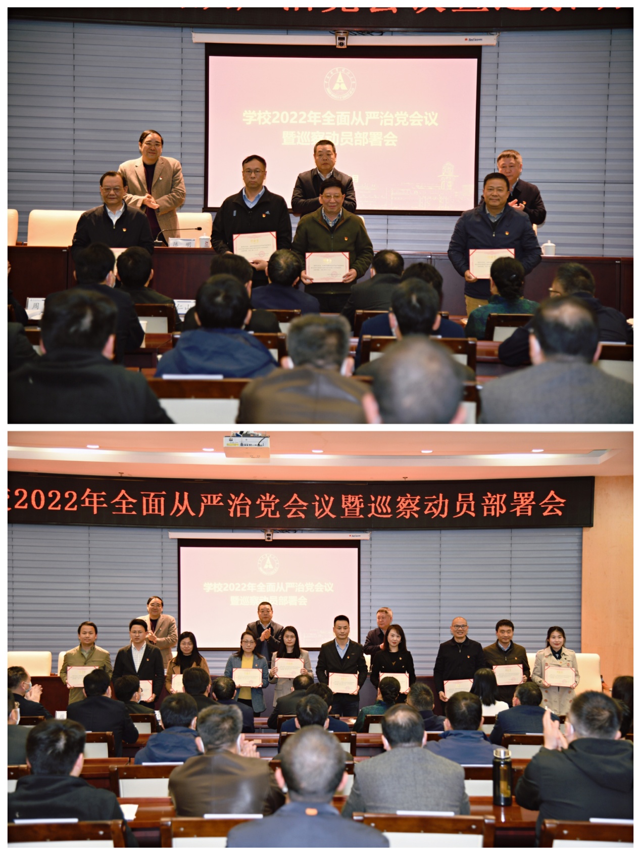 学校领导班子成员,党委委员、纪委委员,第四届党委第四批巡察组组长、副组长、组员,各二级单位党政主要负责人,二级纪委书记等参加会议。