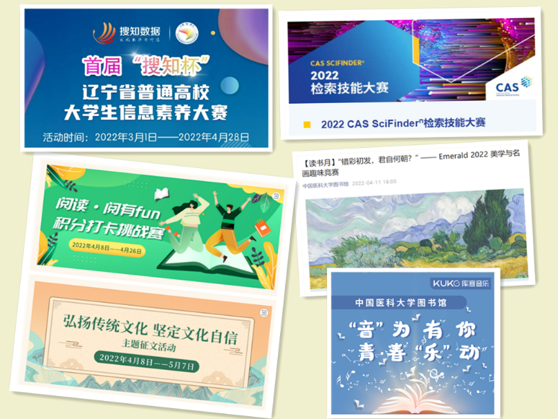 为了丰富疫情防控期间读者的学习科研生活,在世界读书日到来之际,图书馆借读书月到来之际,举办了信息检索大赛、趣味知识竞赛、读书打卡、阅读书评等丰富多样的线上活动,培养了读者阅读习惯、提升了读者信息检索素养、丰富了读者的业余生活,缓解了读者紧张情绪。