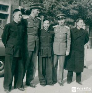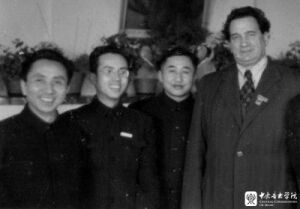 20世纪50年代,吕骥(左一)与来校讲学的苏联专家合影