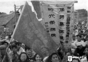 1952年,学校师生在白沙水库参加治淮劳动