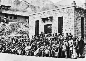 上:1939年与华北联合大学同事一起在河北平山合影。右起:吕骥、江隆基、成仿吾、何干之、朱改、申力生、李凡夫