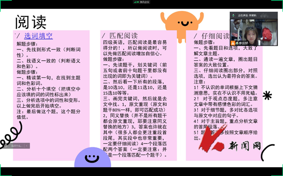 交流中,学生代表分别从题型分布、答题技巧、学习方法以及备考过程中的注意事项四个方面给出了具体建议,并从自身的备考经验出发,结合PPT向大家分享了答题思路及平时的练习方法,系统讲解了应对英语四级考试的方法,让同学们更加清晰的了解在考试中如何正确安排有限的考试时间。(土木学院 程子轩/文)