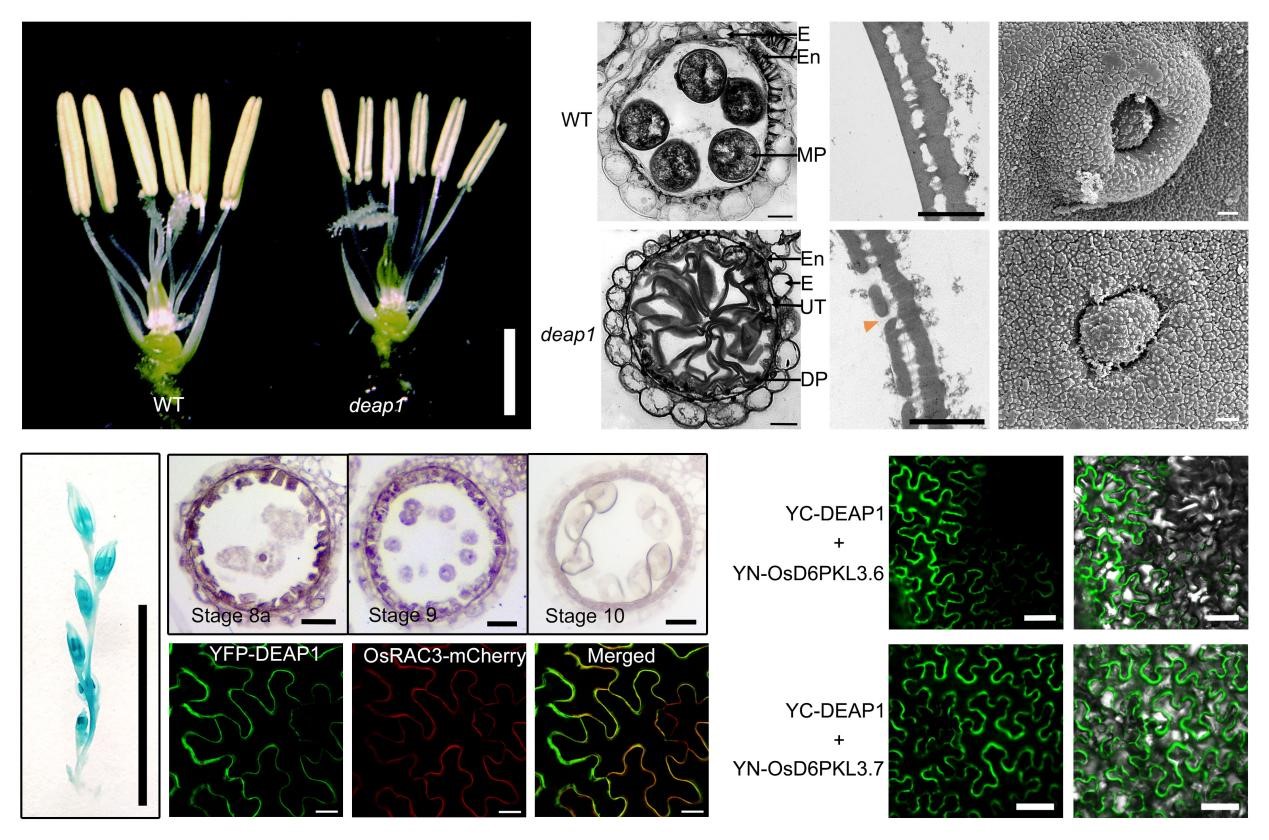 图:DEAP1基因的突变表型、表达特征及蛋白互作鉴定