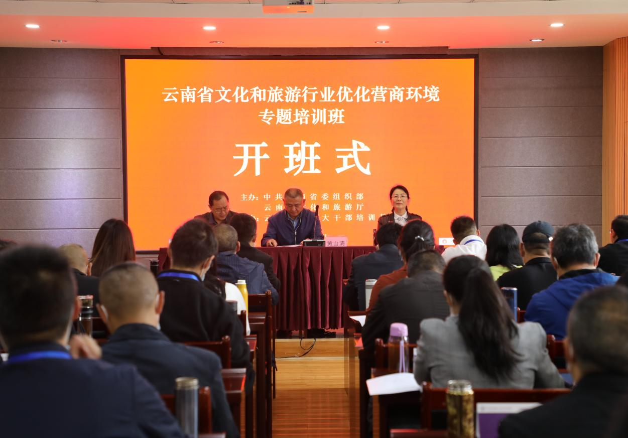 云南省文化和旅游厅市场管理处二级调研员黄山清在动员讲话时强调,要充分认识当前优化营商环境工作的重要性,新冠肺炎疫情发生以来,全省文化旅游行业受到较大冲击,文旅企业在加大投入、开拓市场、转型升级等方面,需要进一步解决好能力不足、信心不足、动力不足的问题。今年以来,省里相继出台文旅行业纾困帮扶措施,深化“放管服”改革工作要点等,通过进一步优化营商环境,帮助企业恢复信心,稳岗就业,提升市场主体内生动力,提升市场主体倍增计划落实,因此举办此次培训班正逢其时。黄山清结合国家和云南省文旅融合工作部署,对本期培训提出了3点要求:一是全体参训学员要充分认识开展文化和旅游融合发展培训班的目的意义,坚持问题导向,聚焦推动云南省文旅产业融合发展关键和主题,坚持改革创新、示范引领,以旅彰文、以文促旅;二是要抓好培训内容的落实,围绕专题讲座认真思考,在现场教学中体验感受思考,在分享交流中学习互鉴,确保学有所成;三是要抓好培训纪律的落实,树立学员意识,遵守培训纪律,端正学习态度,严格遵守学习培训和廉洁自律的各项规定,确保培训圆满举行。