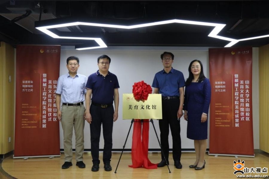 王君松、兴隆山软件园管理办公室主任王明山、机械工程学院党委书记刘杰和齐鲁交通学院党委书记周作福共同为美育文化馆揭牌。