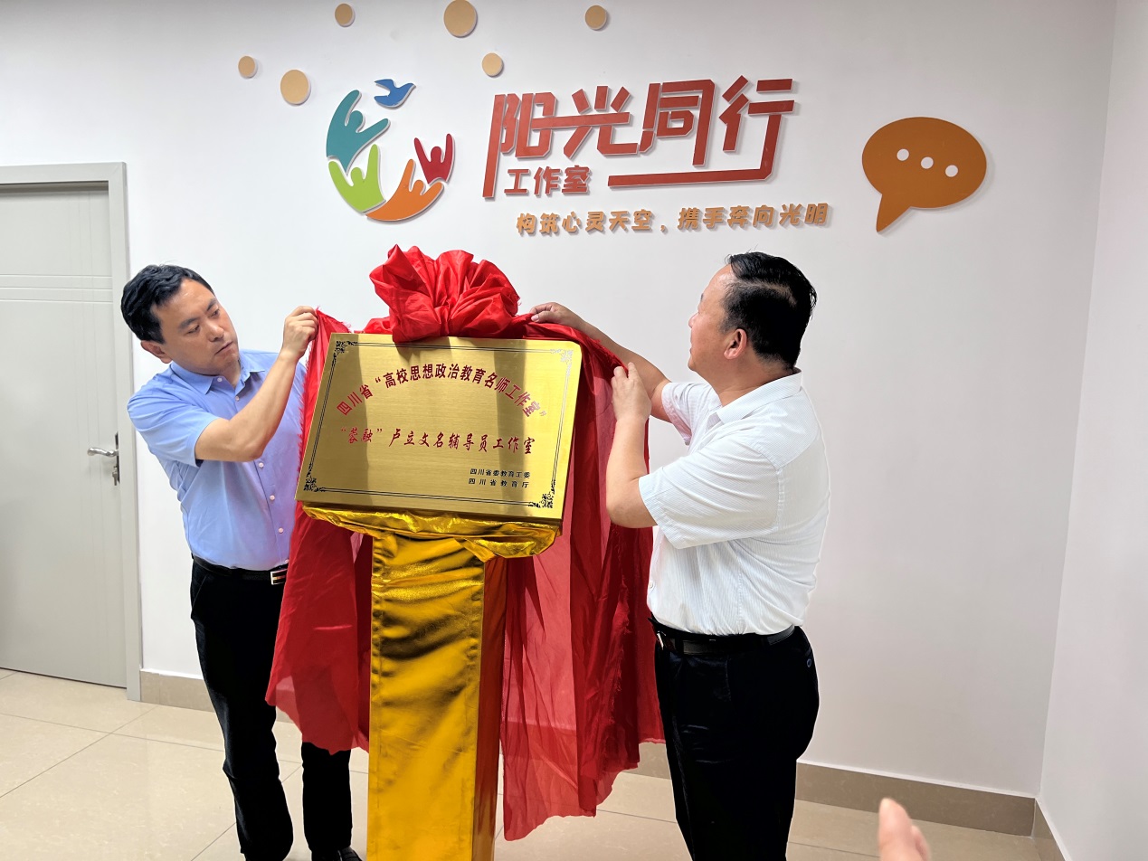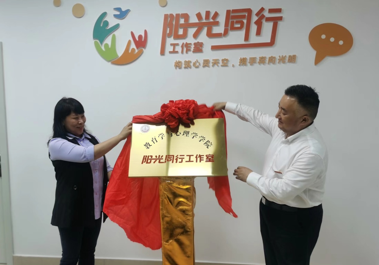 党委常委、副校长恩佳和党委学生工作部部长陈勇为“阳光同行”工作室揭牌