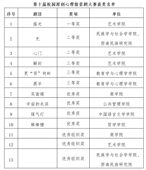 通过组织开展校园原创心理情景剧大赛,进一步推动了校园心理文化建设,丰富了学生校园文化生活,给学生以健康生活、阳光心态的启智与感悟,帮助学生努力实现自我心灵成长,在青春的赛道上奋力奔跑,以实际行动迎接党的二十大胜利召开。