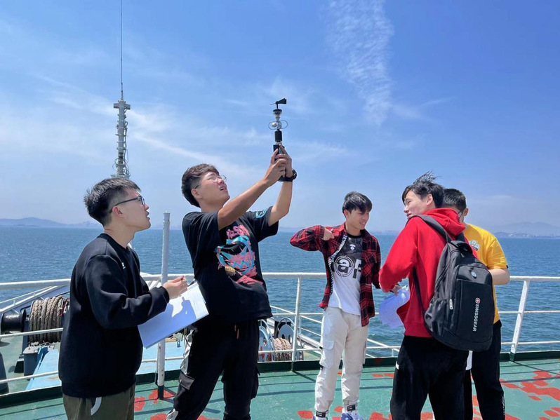 测风向风速、看云状云高云量海况、测海流、挖海底海泥、拖生物网、显微观察海洋中的微小生物,抑或检测水深、水色、透明度,检测海水溶解氧、pH、盐度等水质参数,观摩船舶驾驶。学生们亲身体验海上生活,学习并掌握了基本的海上调查技能,提高了理论联系实际的能力以及获取和分析资料的能力。
