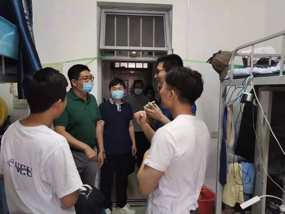 随后,驻校教师走访了各年级宿舍,关心学生在校期间生活,亲切询问了学生近期学习状况,叮嘱学生在努力学好专业知识的同时,也要注意宿舍用电安全,常通风消杀,保持个人卫生。