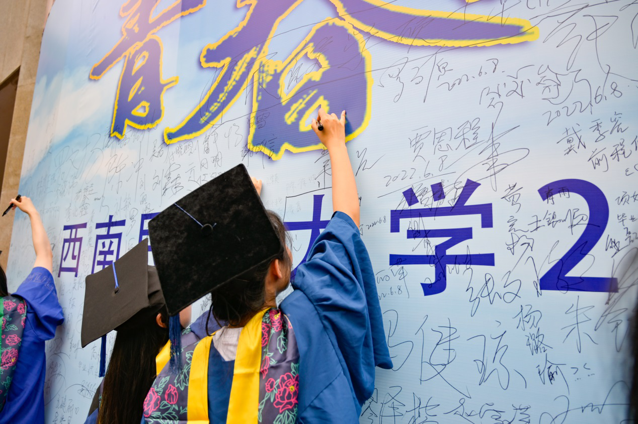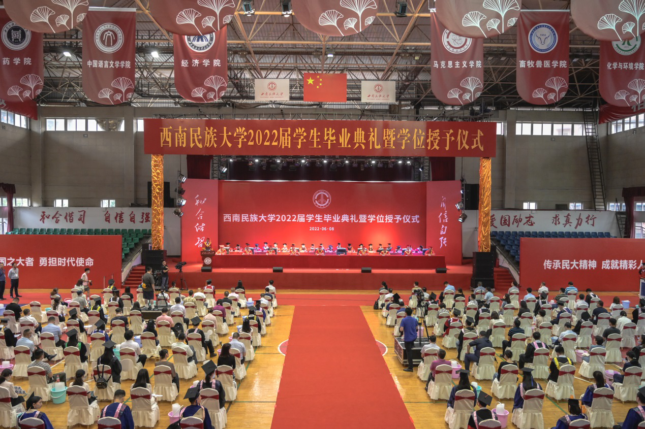 “天府阳光,一片金黄,梦云湖畔,书卷飘香……”当熟悉的旋律响起,毕业生们用自己饱含深情的歌声,再次展示了民大人自信自强的青春本色和矢志不渝的家国情怀。