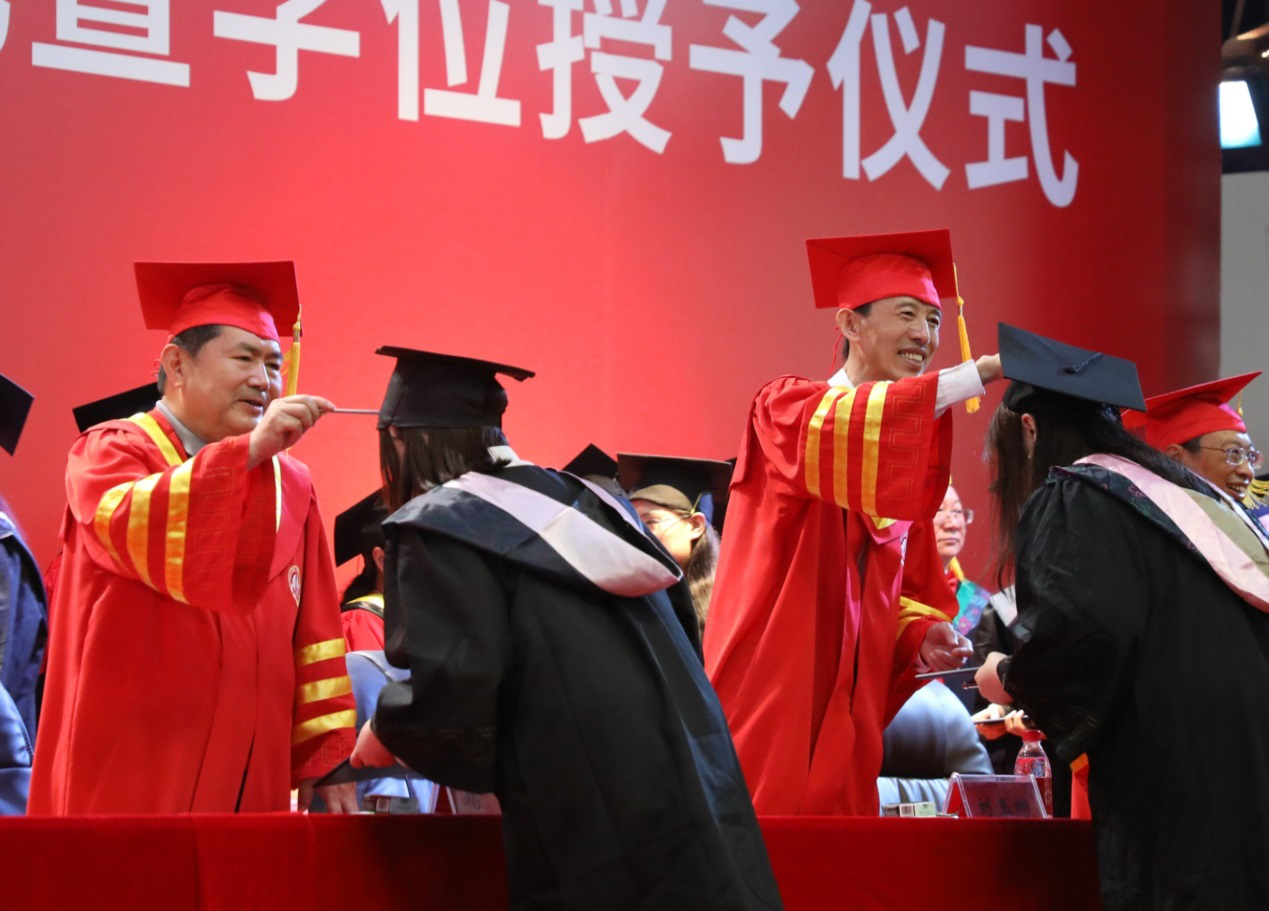 典礼最后进入拨穗礼环节,校领导及各学院党政主要负责人为现场的2022届毕业生们拨苏正冠,与大家合影留念。