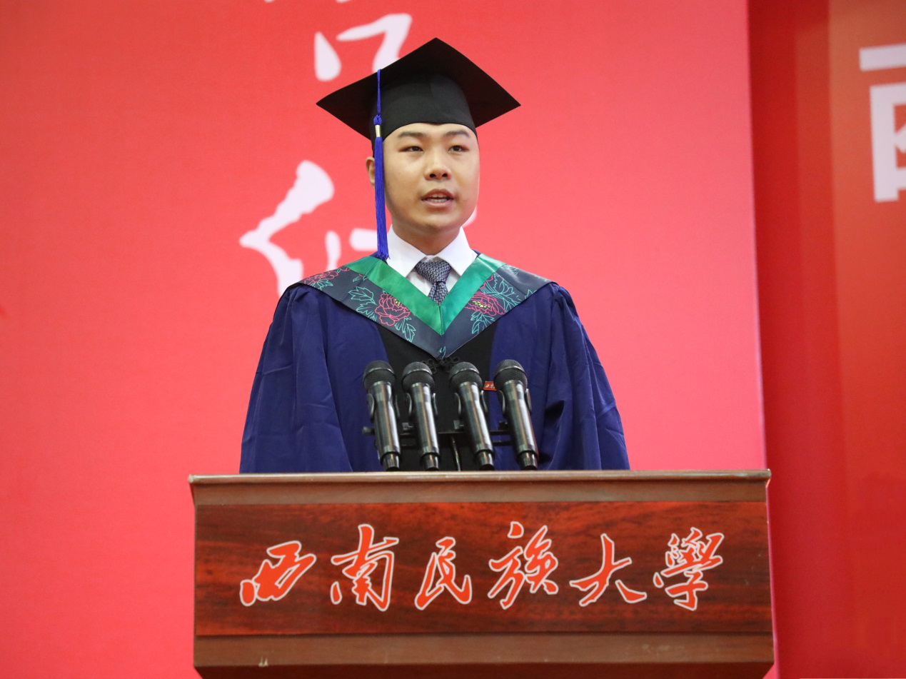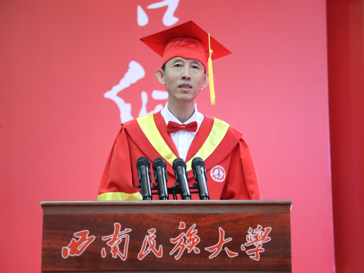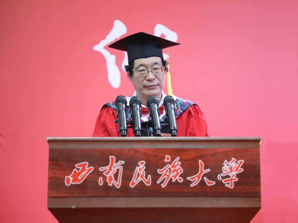 博士生导师、国家高层次人才特殊支持计划哲学社会科学领军人才、文化名家暨“四个一批”人才郑长德教授作为教师代表勉励同学们要做一个健康达人、感恩达人、大格局达人、理性达人和摆渡达人,要成为民大精神的传承者和传播者,在铸牢中华民族共同体意识的道路上挥洒青春热血。