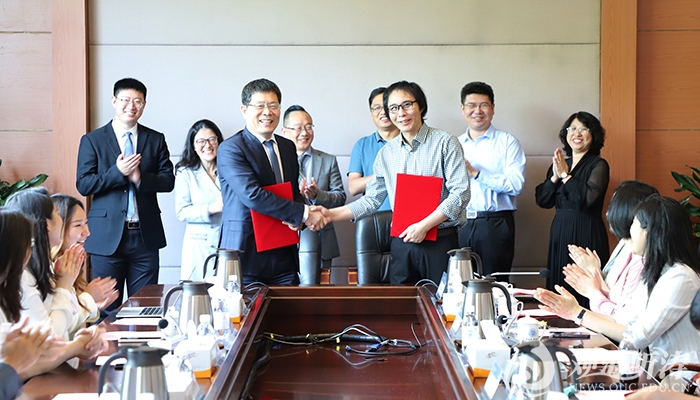 桑本谦(前排右)与张志国(前排左)签署联合培养基地协议