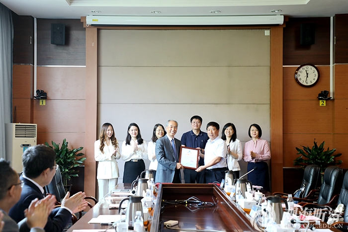 6月8日上午,中国海洋大学—山东文康律师事务所联合培养基地签约授牌暨捐赠签约仪式在崂山校区举行。中国海洋大学副校长、教育基金会理事长王剑敏,文康律师事务所(以下简称“文康律所”)主任张志国,文康公益慈善基金会理事长殷启峰等出席仪式。