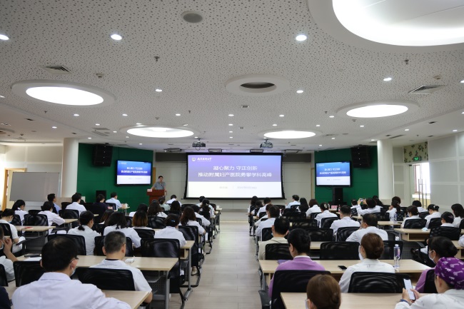 会上,胡志斌校长作附属妇产医院高质量发展主题报告,从形势背景、现况分析、发展思考等方面分析了附属妇产医院的建设思路和方向。他强调,附属妇产医院具有鲜明的专科特色,要借助学校深入推进附属医院高质量发展三年行动计划的契机,进一步凝聚共识,明确目标,聚焦妇产科疑难重症学科,驱动区域女性生殖健康发展;坚持校院联合,持续加强人才引培力度;坚持开放式创新,加强平台建设、临床研究、项目建设和过程管理;加大对教育教学的重视度和投入度,强化临床教学能力,为学校“双一流”建设和“健康中国”战略实施贡献“妇院经验”和“妇院力量”。