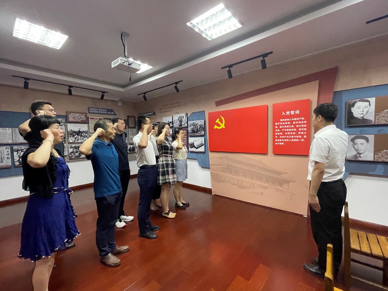 参观结束后,全体党支部书记在党办主任刘东宇的带领下,举起右拳,庄严宣誓,重温入党誓词。