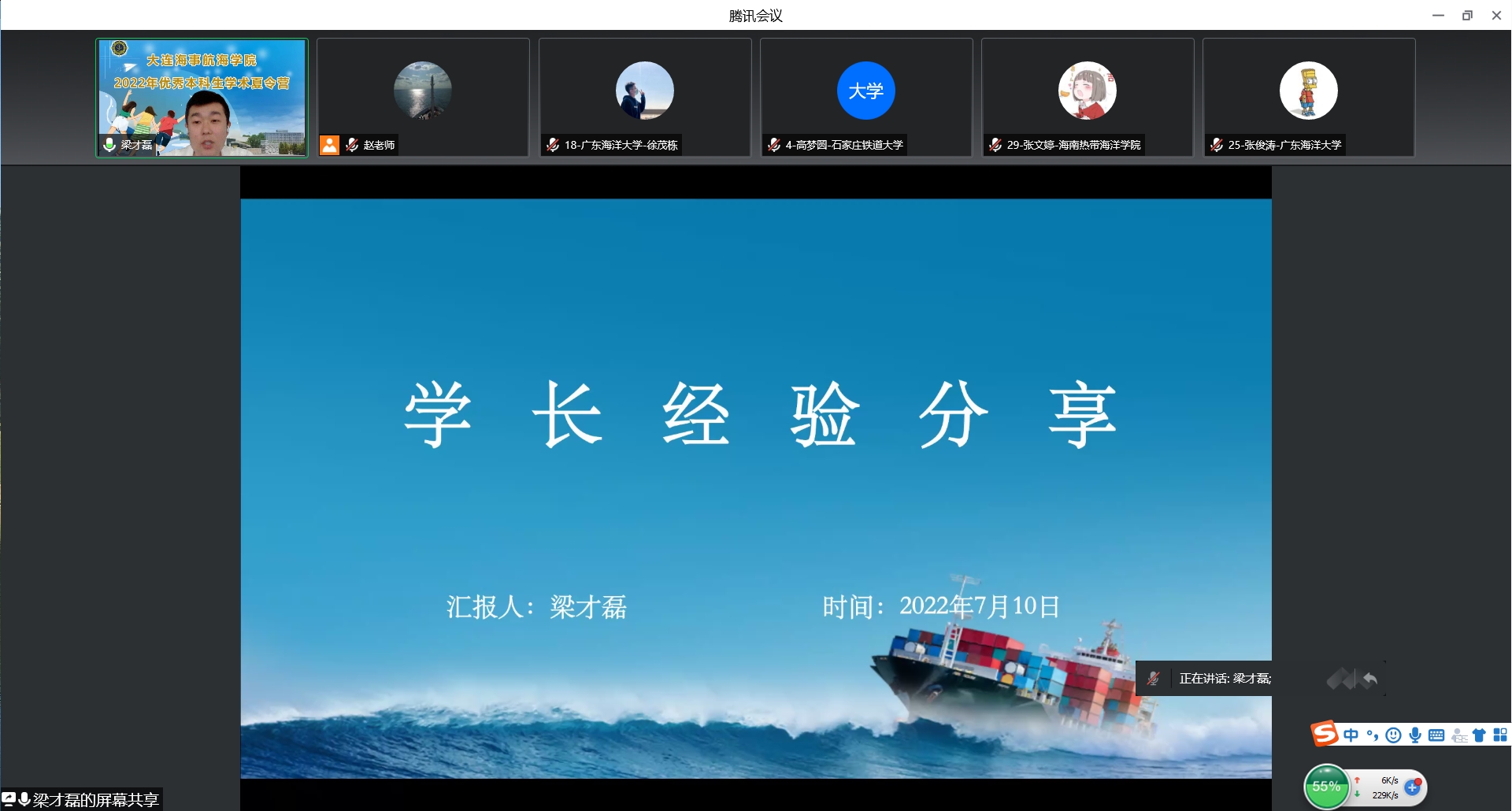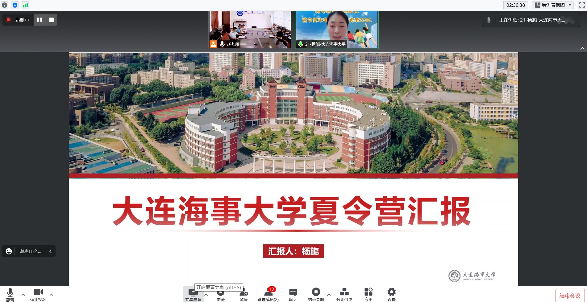夏令营开营仪式于7月9日上午举办,院长章文俊致欢迎辞,副院长肖仲明主持。章文俊对各位同学的到来表示欢迎,肯定了同学们在海洋强国、交通强国背景下来到海大、走近航海的正确选择,并寄语同学们能学有所获,期待与同学们明年相约海大。随后,全体营员进行了线上合影。