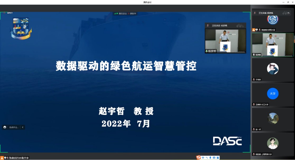 7月14日上午,中心导师赵宇哲教授和中心企业导师李长宏博士开展学术讲座,分别就《数据驱动的绿色港航智慧管控》、《多式联运平台化解决方案与实现路径》两个问题进行深入讲解。赵宇哲教授表示,当下应着眼于航运的绿色低碳发展,坚持数字赋能、智慧管理,为建设交通强国做出更大的贡献;李长宏博士指出,我国多式联运总量偏低、创新不足、整体结构不均衡、协同衔接效应较差等问题突出,我们应建立以铁路为主导的、数据驱动、基础设施互联、信息互通的多式联运平台,实现互联互通的供应链新生态。