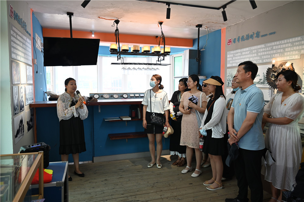 走进老码头史迹馆,听专业讲师讲述老码头工人、红房子工人从被压迫到奋起反抗,以及老码头地下党、抗日防火团的英雄事迹。馆内以百年老码头为主题陈列展出近百幅历史图片、近百件实物展品,呈现出的1899年至今一百二十余年的大连百年历史,使教师们更加了解大连百年历史风云。