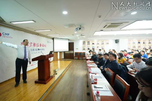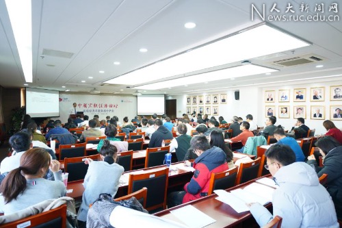 论坛由中国人民大学一级教授、经济研究所联席所长、中国宏观经济论坛联席主席杨瑞龙和中国人民大学研究生院常务副院长、中国宏观经济论坛主要成员刘凤良教授主持,中国人民大学副校长刘元春,中国人民大学经济研究所联席所长、中国宏观经济论坛联席主席、中诚信集团董事长毛振华,国家信息中心经济预测部副主任牛犁,财新智库董事总经理、莫尼塔研究首席经济学家钟正生,英国巴克莱银行中国首席经济学家、董事总经理常健,中国人民大学经济学院院长助理、中国宏观经济论坛主要成员于泽等嘉宾出席本次论坛。来自学界、商界、研究机构和媒体界的逾百名来宾在北京冬日严寒中赶来听会,现场气氛热烈。