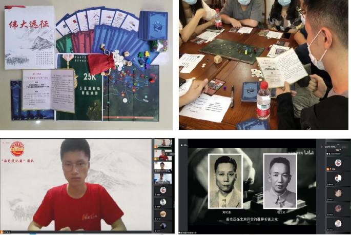 公共管理与人文艺术学院的西行漫记者队主要由学生党员和入党积极分子组成。同学们积极学习革命先辈的英雄事迹,创新形式和载体,以学习“长征精神”为切入点,自主研发设计红色策略桌游《伟大远征》,通过云调研长沙、武汉、揭阳等多地的革命纪念馆、观看长征经典影片、研读红色书籍、撰写学习心得等形式,持续接受红色文化熏陶,感悟伟大的长征精神。团队结合所思所想,策划并举办线上红色小课堂、红色桌游团训、红色观影等活动,借助抖音短视频、微信推送、互动型H5等新媒体手段大力推广,让更多的青年人在互动交流中学习先辈事迹、感悟长征精神,实现了青年自我教育和朋辈引领相结合,用实际行动和青春力量传承红色基因、先辈风骨和英雄事迹。