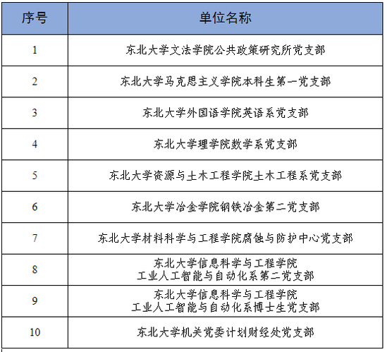 继续教育培训网首页日前,中共辽宁省委教育工作委员会公布第三批全省党建工作示范高校、标杆院系、样板支部培育创建单位名单,经资格审查、专家评审、结果公示,东北大学文法学院党委、理学院党委入选“全省党建工作标杆院系”培育创建单位名单,东北大学马克思主义学院本科生第一党支部、信息科学与工程学院工业人工智能与自动化系第二党支部、机关党委计划财经处党支部等10个党支部入选“全省党建工作样板支部”培育创建单位名单。