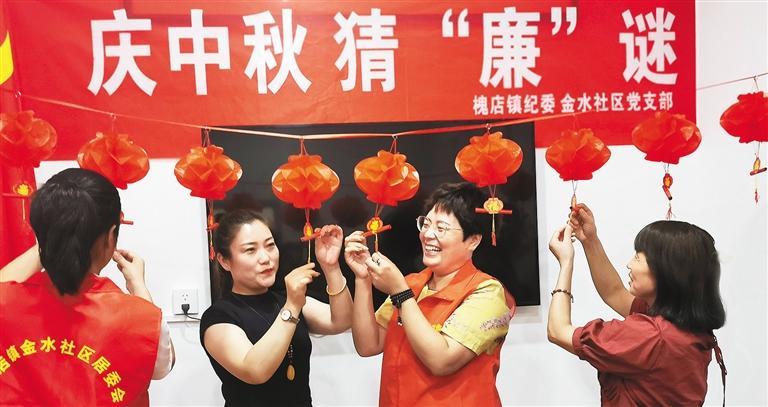 9月8日,河南省沈丘县槐店镇纪委联合金水社区党支部,举办“庆中秋 猜‘廉’谜”活动,为中秋佳节增添祥和幸福廉洁氛围。王向灵摄(中经视觉)