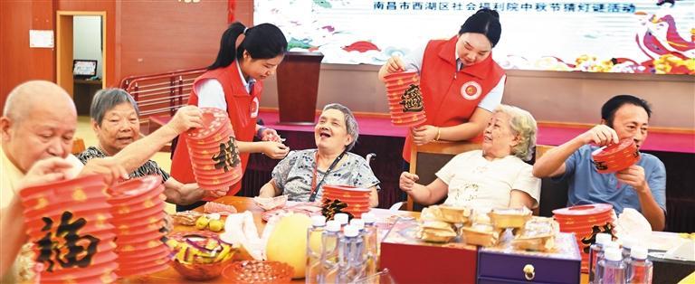 9月9日,江西省南昌市西湖区社会福利院开展“福满中秋 乐在其中”活动,党员志愿者与老人共度佳节,让老人感受浓浓温情。陈莉摄(中经视觉)