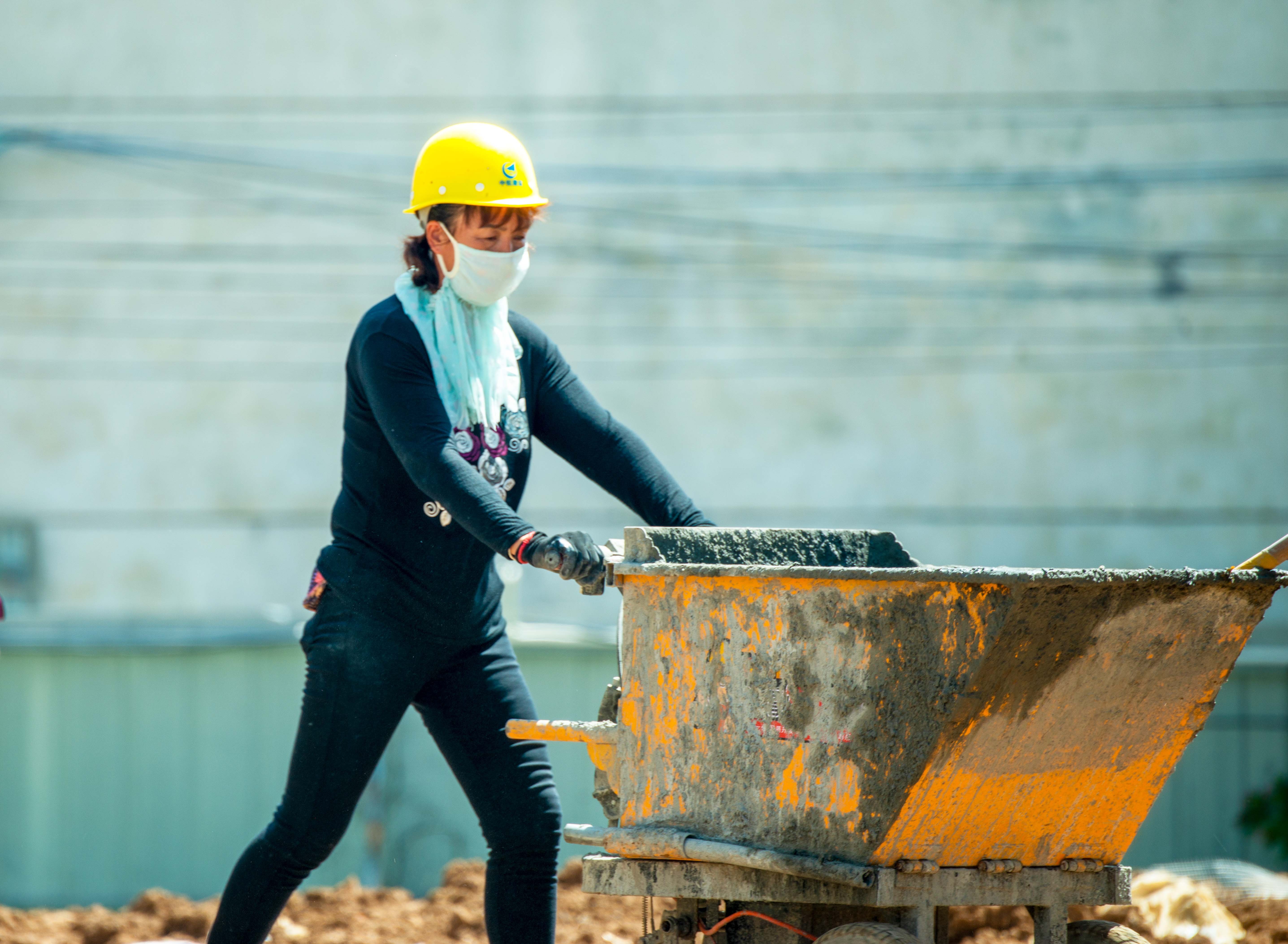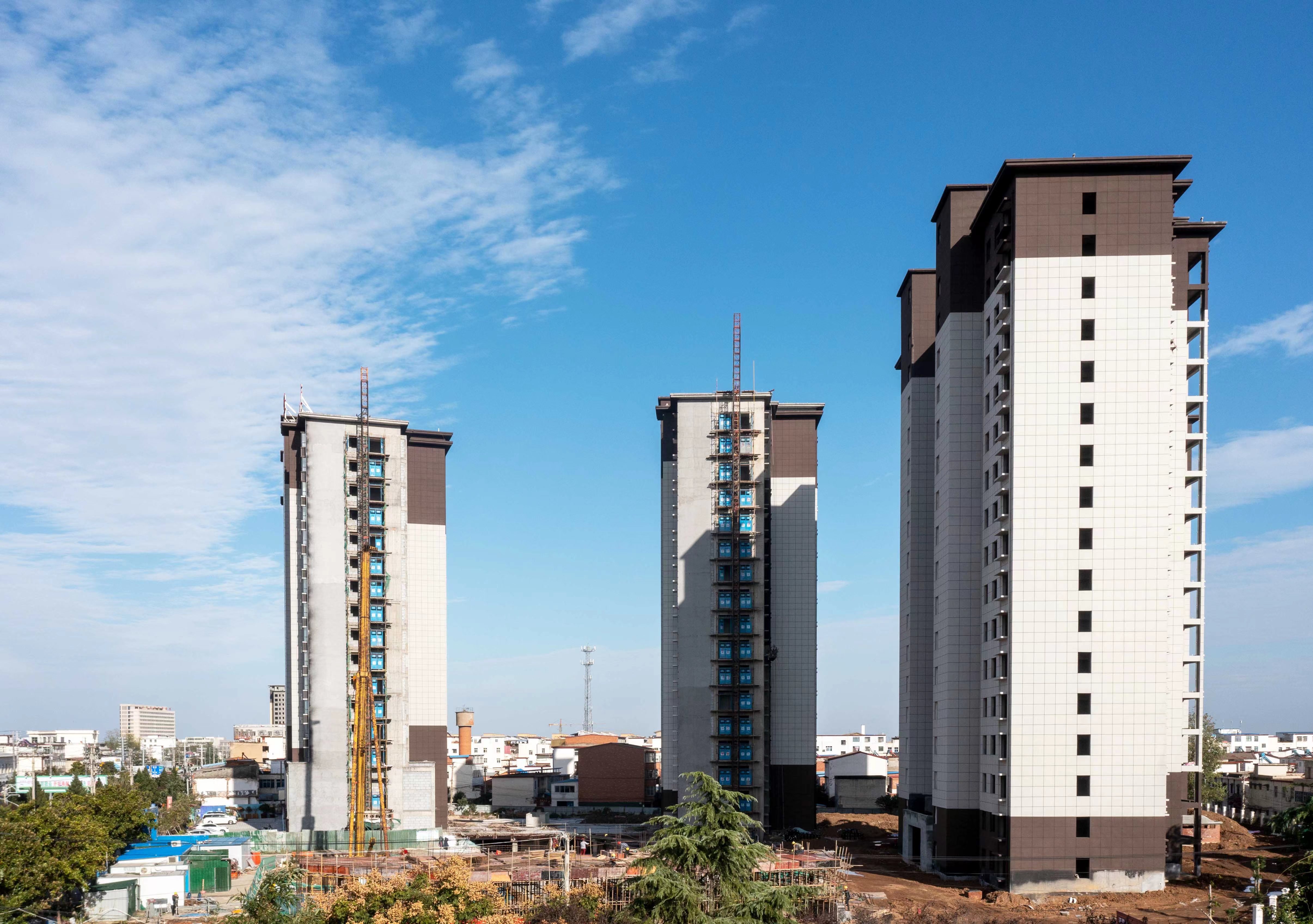 近日,在河南省驻马店市正阳县城东区棚改项目施工现场,工人正在浇筑水泥。车顺才 摄