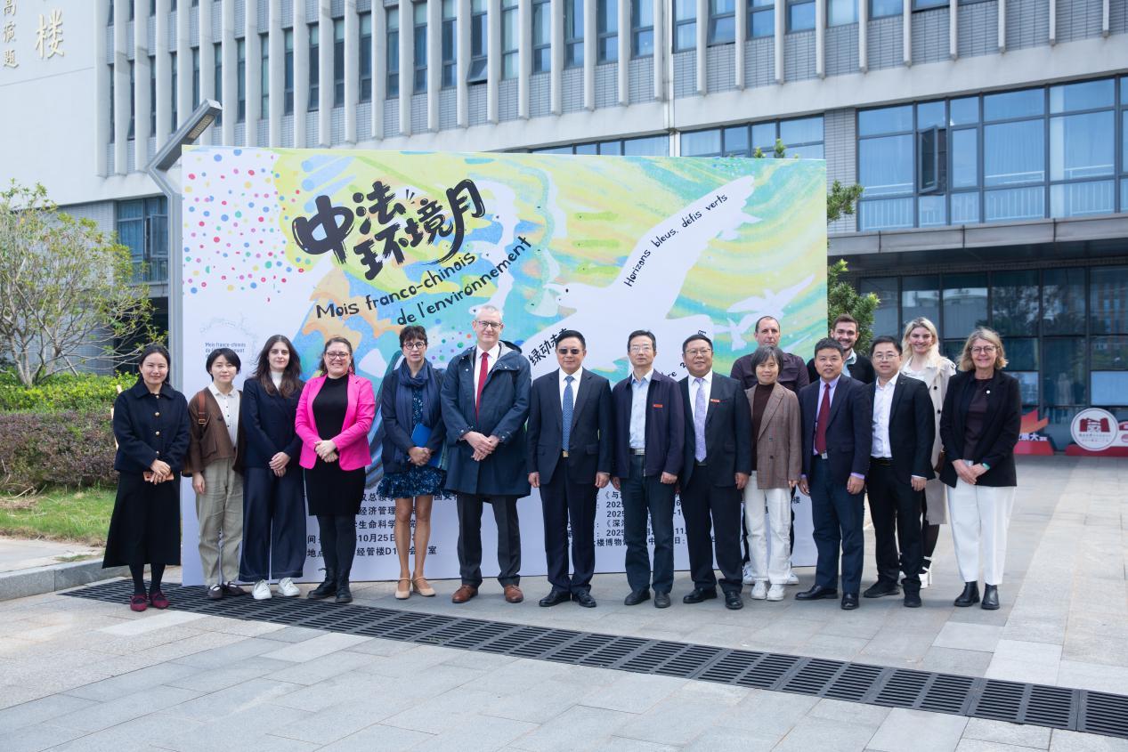 本网讯(经济管理学院)10月25日上午,由我校经济管理学院中法中心与生命科学学院联合承办的第十二届“中法环境月”南昌大学站开幕式在学校举行。中法双方代表齐聚一堂,共同见证这一环保盛事的启幕。法国驻武汉总领事乐朗儒先生、科教专员嘉俪夏女士、科技教育合作项目官员明盖碧女士、教育项目官员李丹女士,法国普瓦提埃大学中法合作项目法方负责人伊威莉娜·朗德女士等法方嘉宾,校党委书记罗嗣海出席活动。