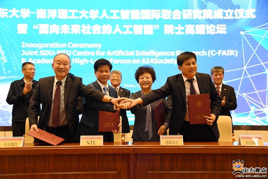2019年10月,山东大学与新加坡南洋理工大学、山大地纬、章丘区政府签署《AI+智慧社区研究及高端AI人才联合培养交流计划》,该计划是C-FAIR成立以来首个四方合作项目。